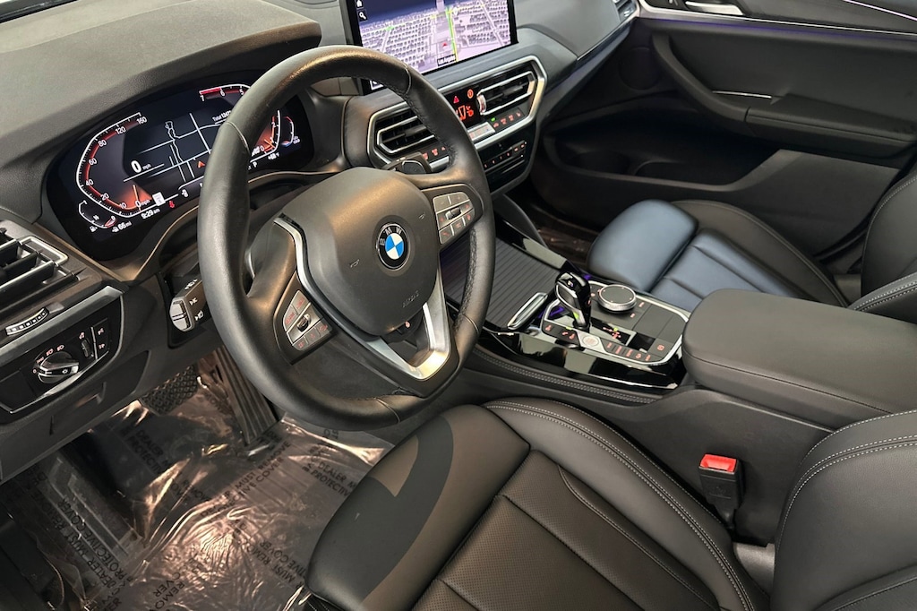 This 2023 BMW X4 xDrive30i is a One Owner vehicle with a Clean Carfax, exterior, and interior. Key features include BLACK PERFORATED SENSATEC UPHOLSTERY, FINE WOOD OPEN-PORED ASH GRAIN TRIM, HEATED STEERING WHEEL, PREMIUM PACKAGE, HEATED FRONT SEATS, Panoramic Roof, Rear Parking Aid, Blind Spot Monitor, Cross-Traffic Alert, and much more!