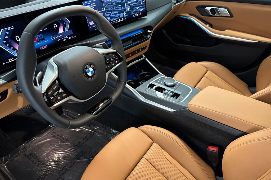 This 2025 BMW 3 Series 330i is a One Owner vehicle with a Clean Carfax, exterior, and interior. Key features include PREMIUM PACKAGE, COGNAC PERFORATED SENSATEC UPHOLSTERY, DRIVING ASSISTANCE PACKAGE, PARKING ASSISTANCE PACKAGE, Sun/Moonroof, Heated Front Seat(s), Navigation System, Immobilizer, Front Collision Mitigation, and much more!